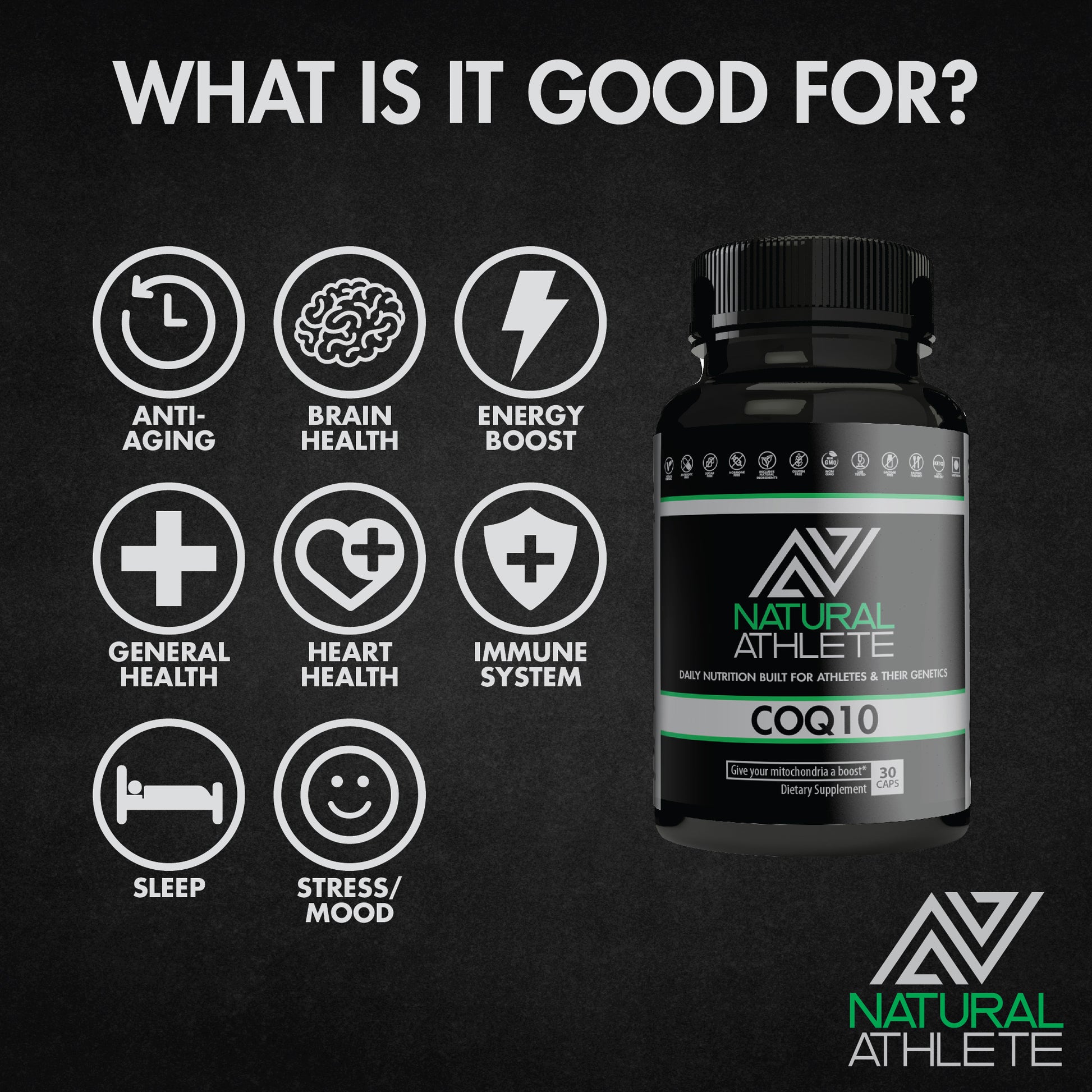 COQ10 can help athletes by boosting energy production, which leads to faster healing times, increased overall energy, and fewer health problems. Additionally, COQ10 protects your DNA and combats the damage associated with aging, helping to ward off age-related health conditions. The supplement also supports recovery from exercise or injury, making it a useful tool for athletes looking to enhance their performance.