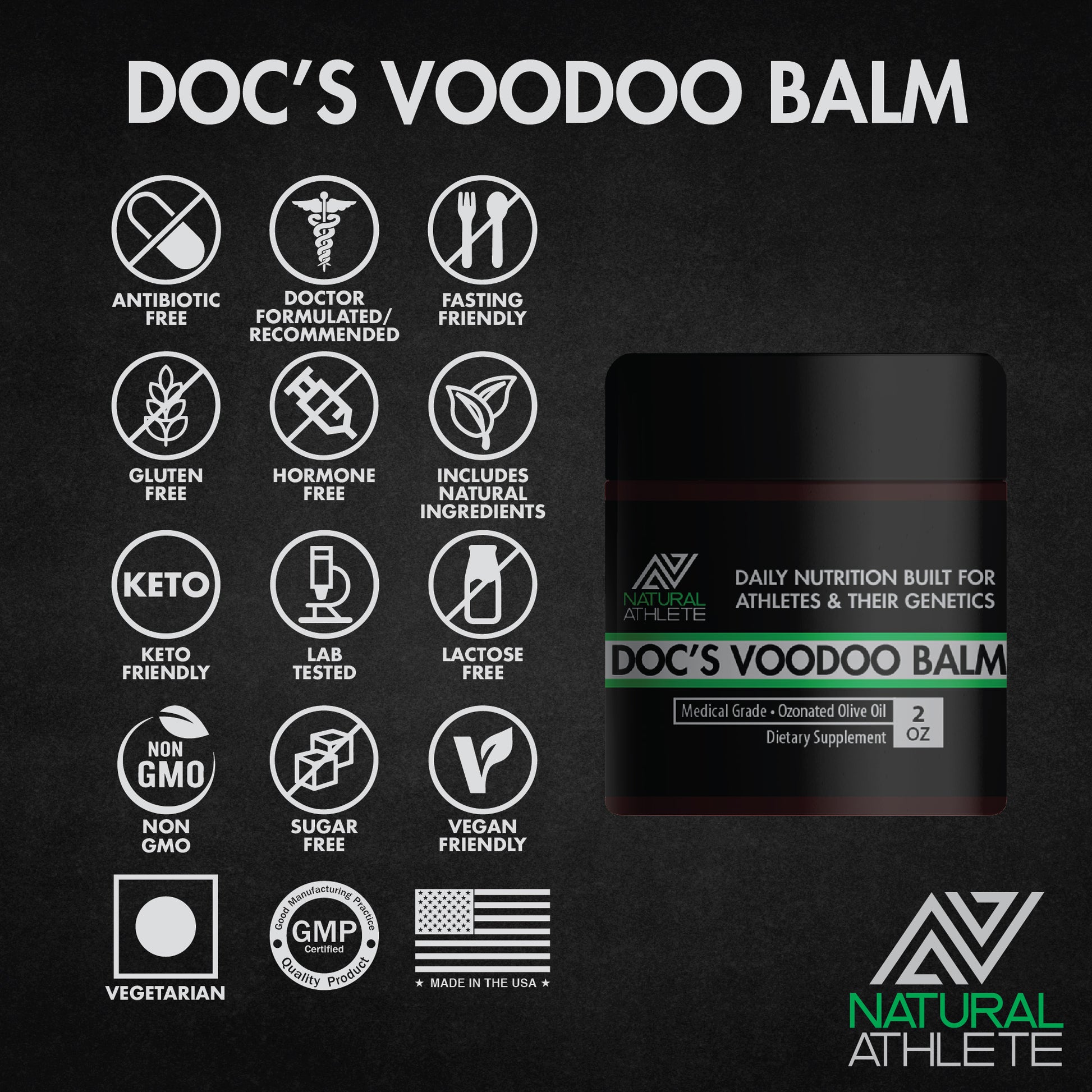 Doc’s Voodoo Balm can help athletes by aiding in injury prevention, improving performance, and promoting faster recovery from injuries. It can also relieve pain, reduce inflammation, and energize muscles. It also works like magic for healing skin injuries due to turf or court burns.