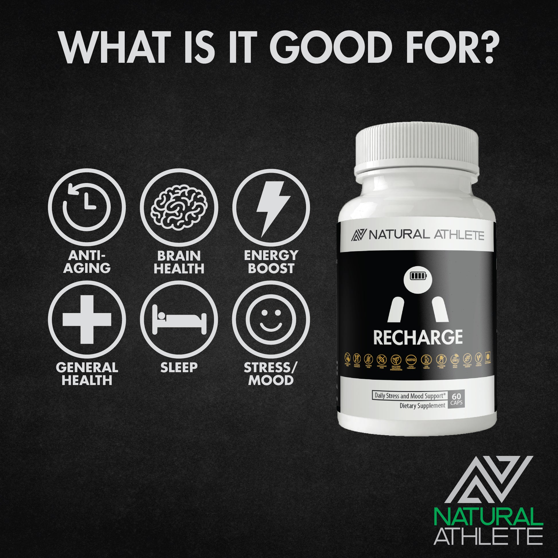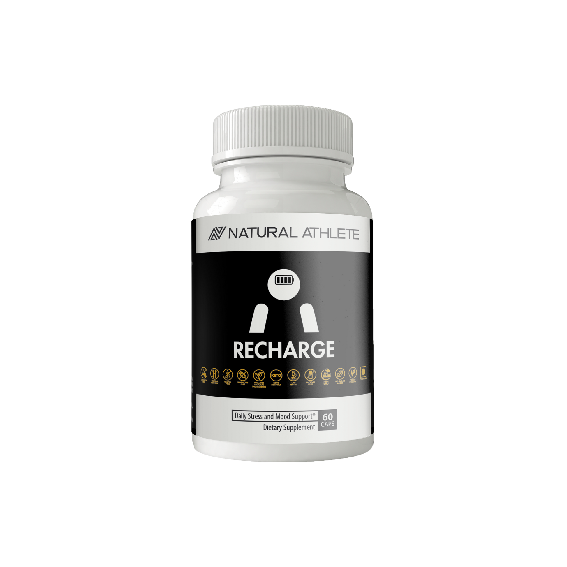 Recharge works by naturally supporting healthy serotonin and dopamine levels, and supporting the adrenal glands (your fight-or-flight, stress system). Natural Athlete has strategically designed nature’s chill pill, just for you!
