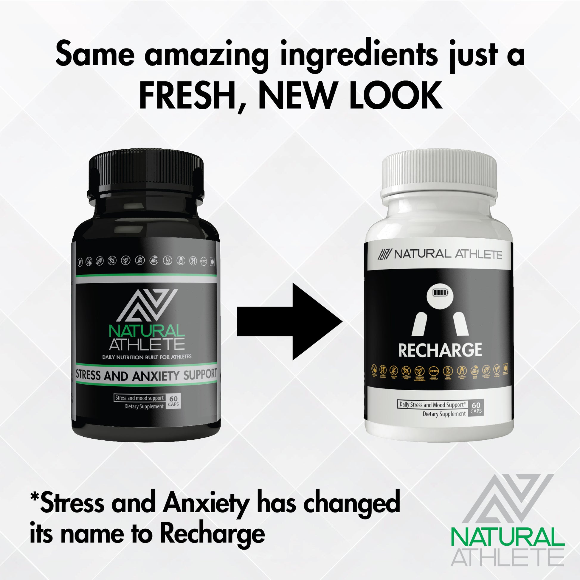 Stress can be physical (an intense workout), mental/emotional (no explanation needed), or chemical (hormones, etc)... Recharge targets all 3 sources to provide true, advanced support.